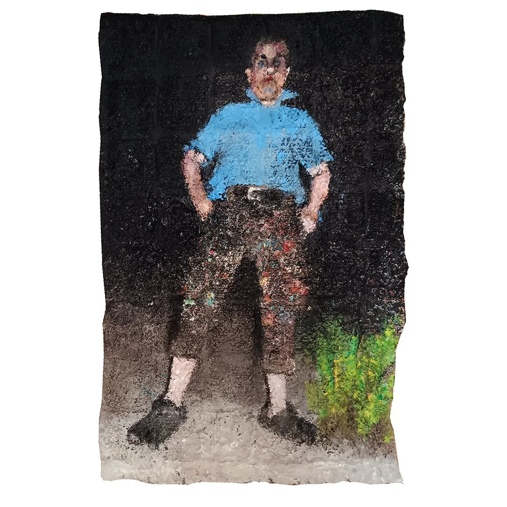 Oil on dishtowel.